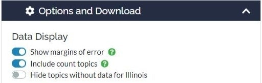 Under Options and Download, use the sliders to turn these options on or off: