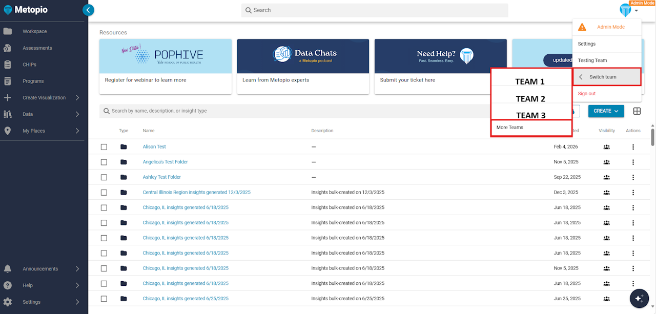 If you are a member of more than one Team, follow the instructions below for Switching Teams.